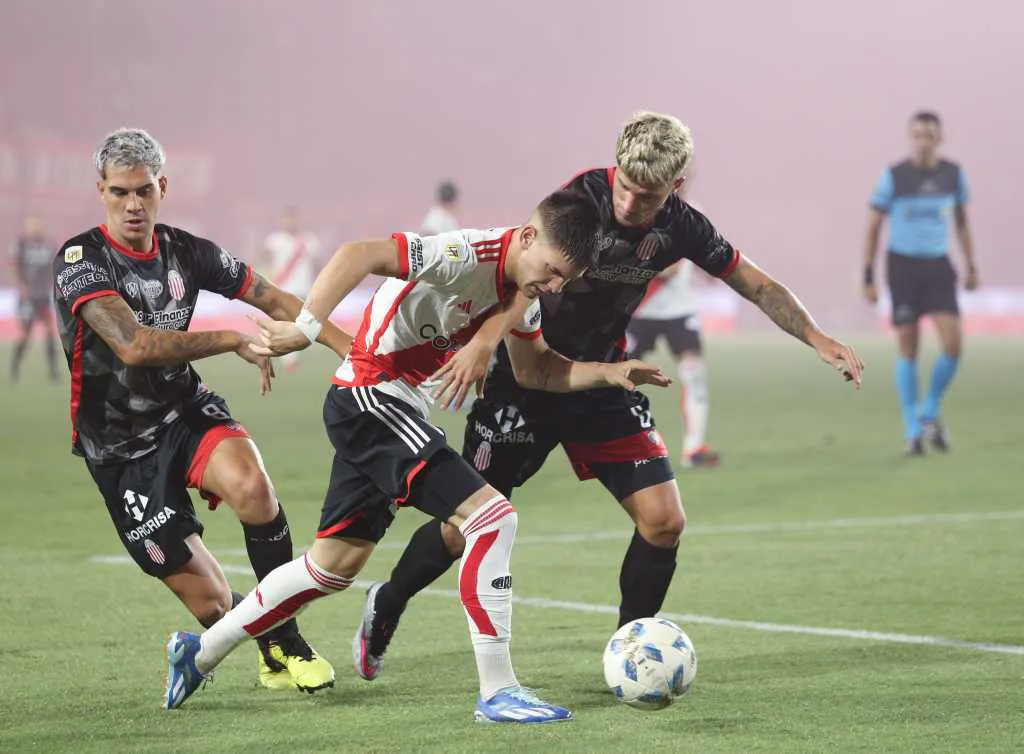 Lo mejor de River se produjo en los pies del chiquilín Mastantuono, quien debutó el domingo pasado en el empate ante Argentinos en el Monumental. Con 16 años, 5 meses y 17 días, el número "30" disputó su primer partido de titular y desplegó su mejor versión cuando lo hizo de enganche.